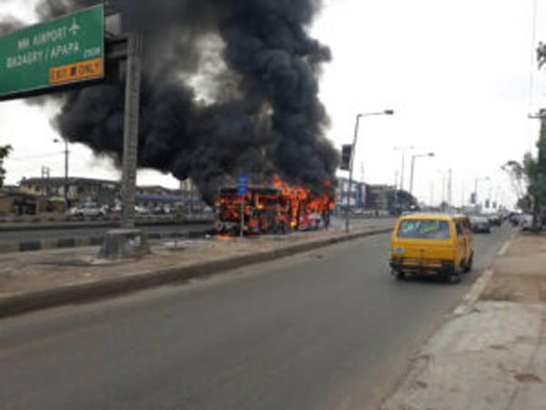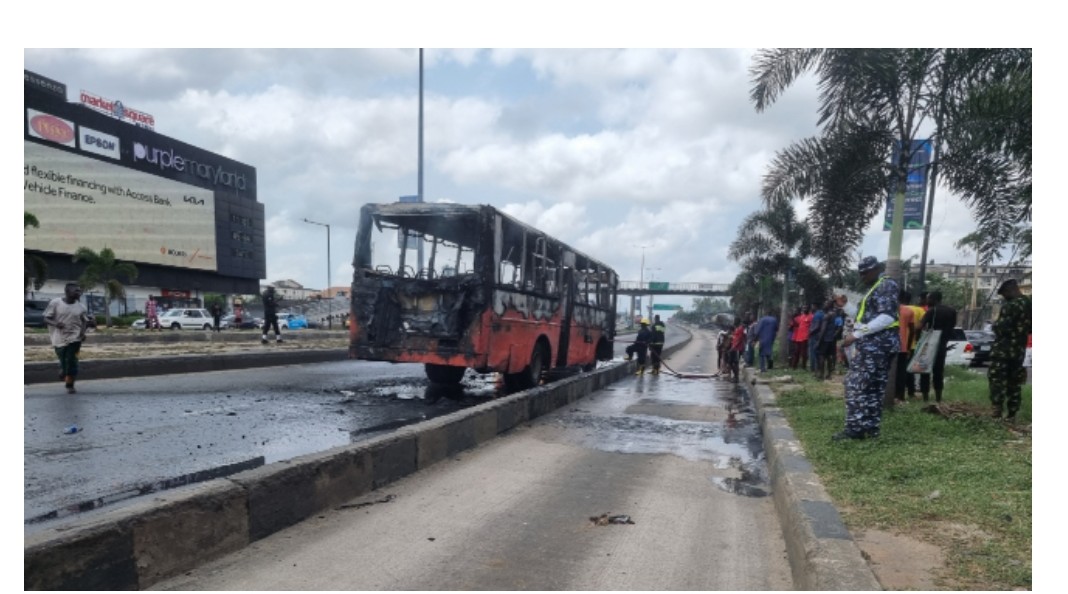 Panic in Lagos, as BRT bus bursts into flames, driver, conductor flee