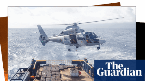 Man clings to a helicopter taking off in Kenya | 7NEWS